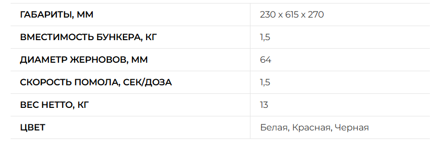 * Жернова 64 мм из высококачественной закаленной стали, устойчивой к коррозии и износу;