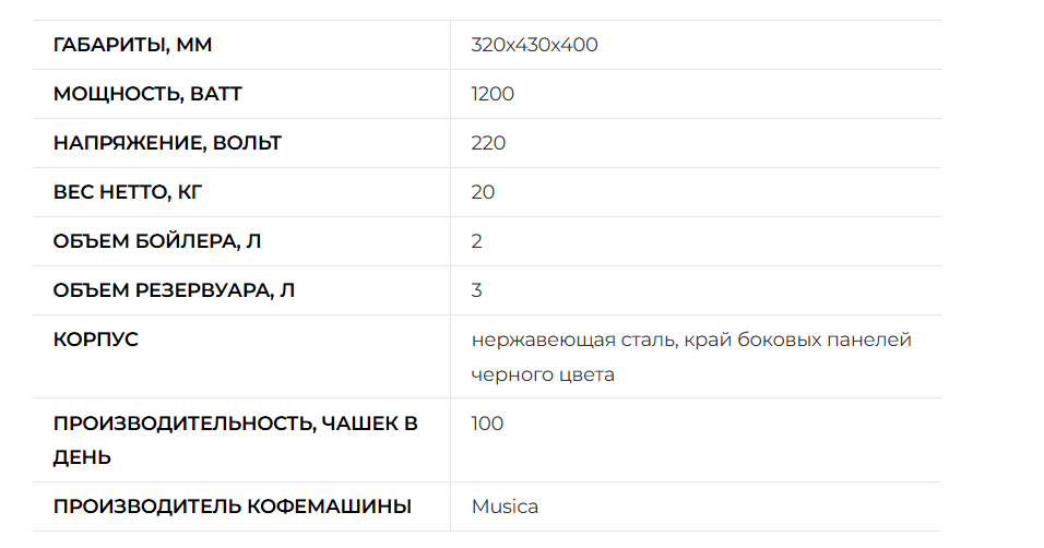 Кофемашина-автомат Musica Standart Black традиционная, заливная с 1 группой