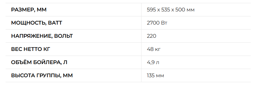 • 1 паровой кран из нержавеющей стали и 1 кран подачи воды;